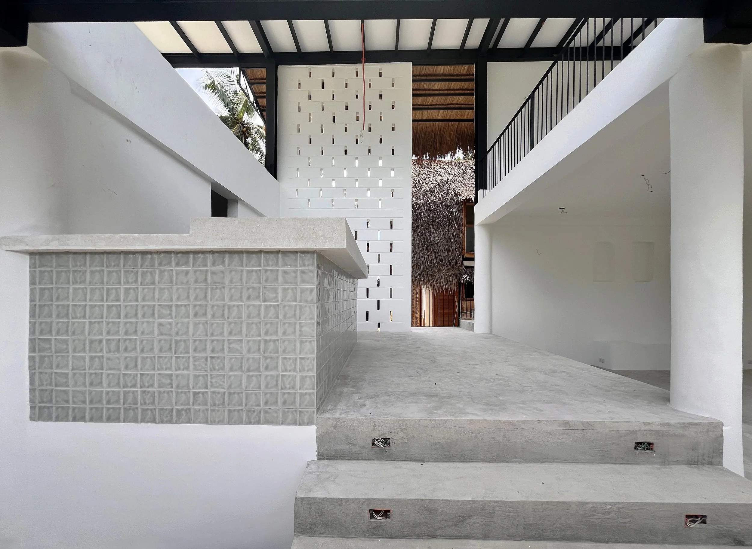 The project was reimagined in two phases. The first phase focused on renovating and modernizing the restaurant, improving kitchen flow and seating arrangements, while adding a second floor with sunset views and light-filled spaces. The open-air concept was maintained, but durable materials like metal and extended roof overhangs were introduced to improve resilience against heavy rain and future typhoons. This phase is currently 80% complete.